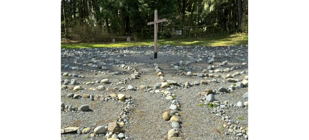 Now walk the path of the Labyrinth to the centre and place your stone at the foot of the cross and leave all that you put into the stone there.